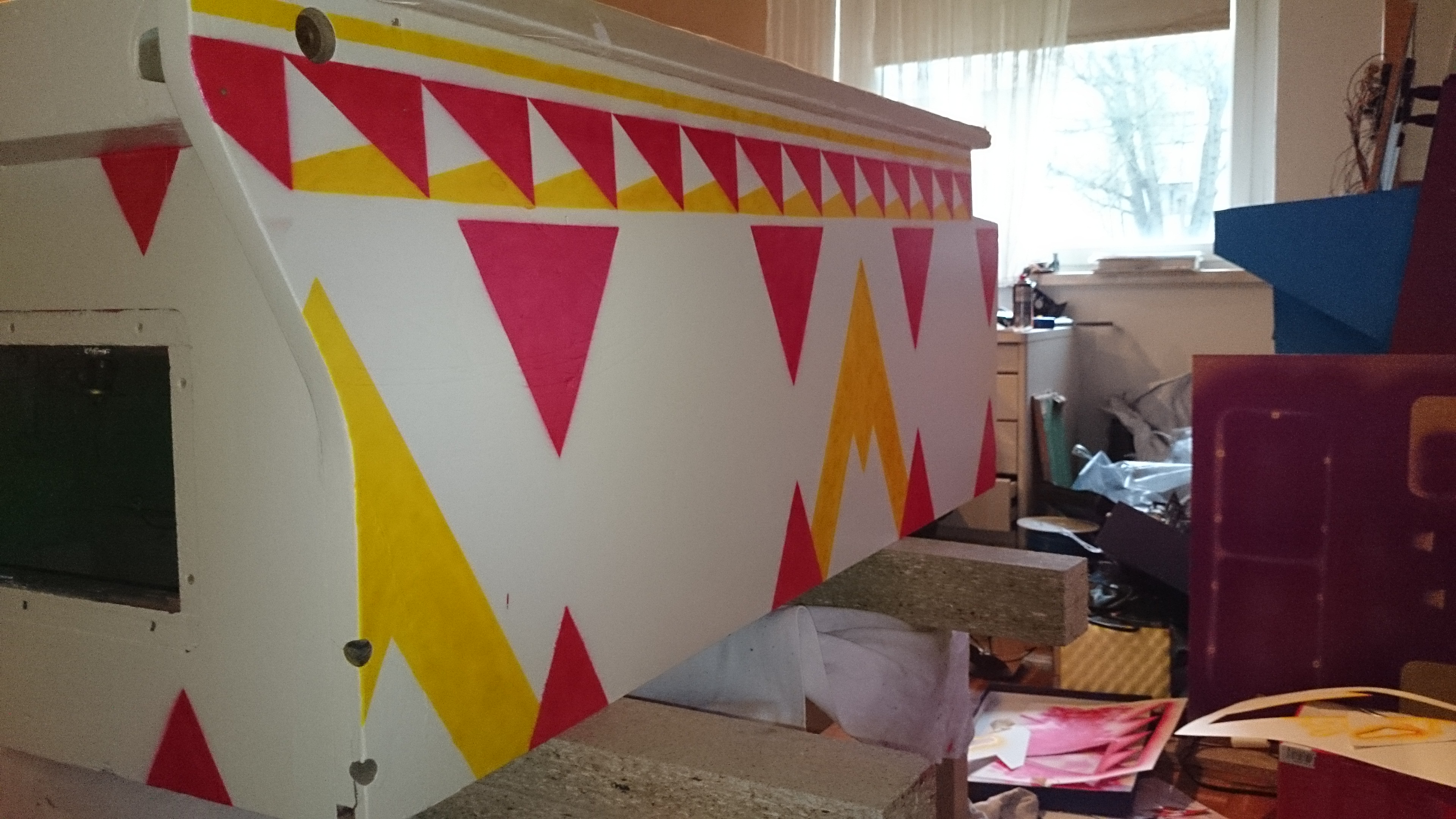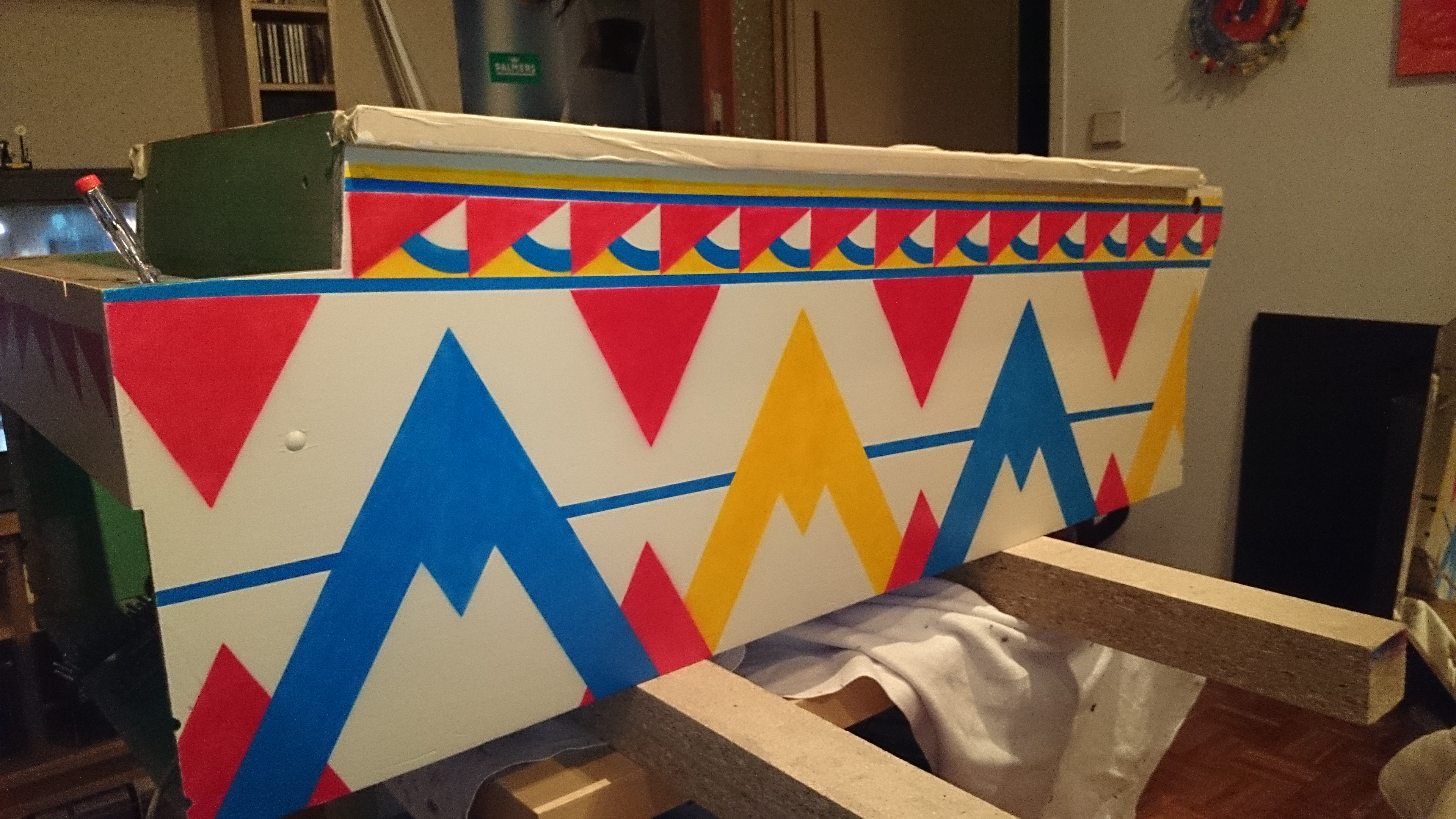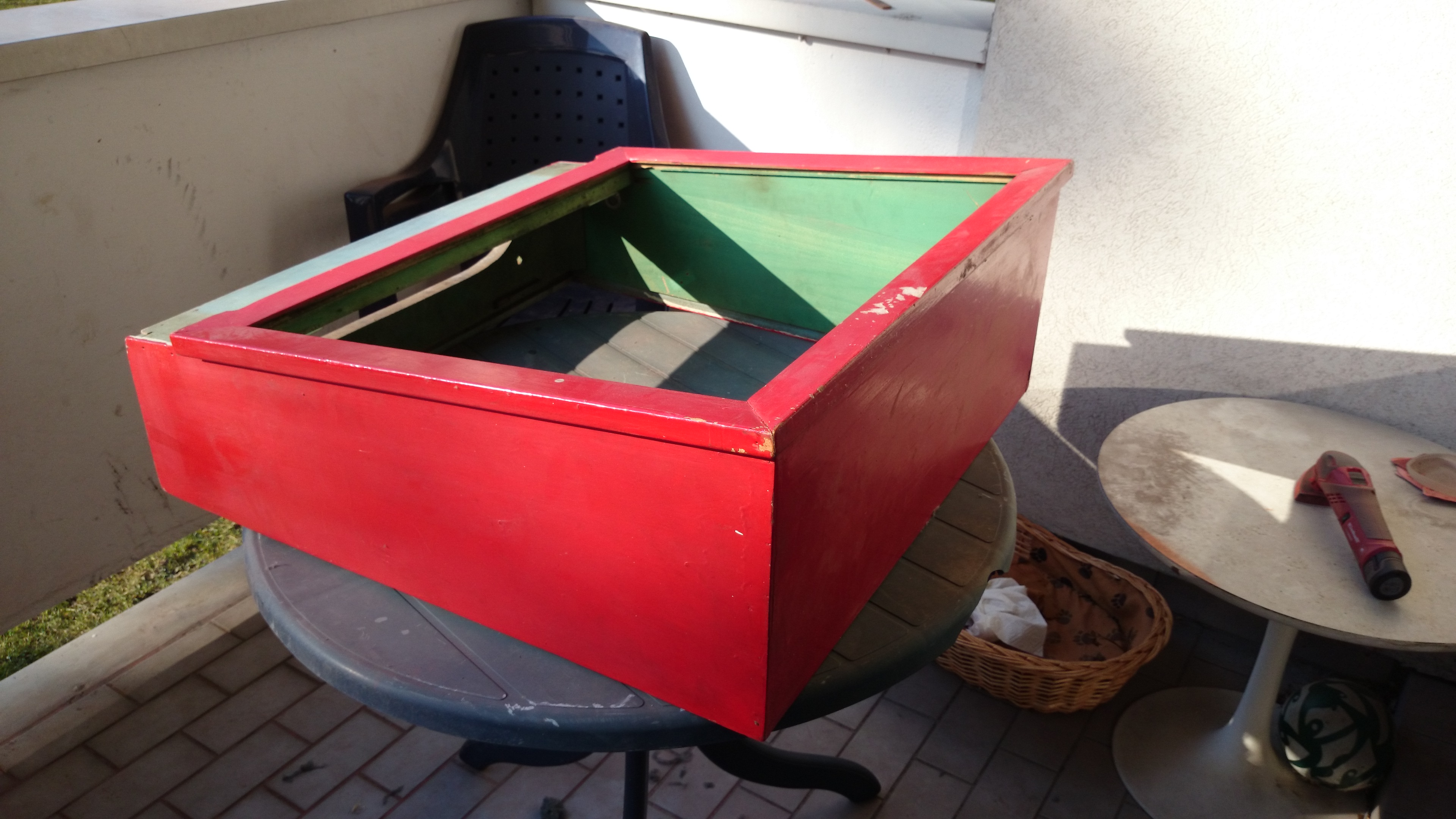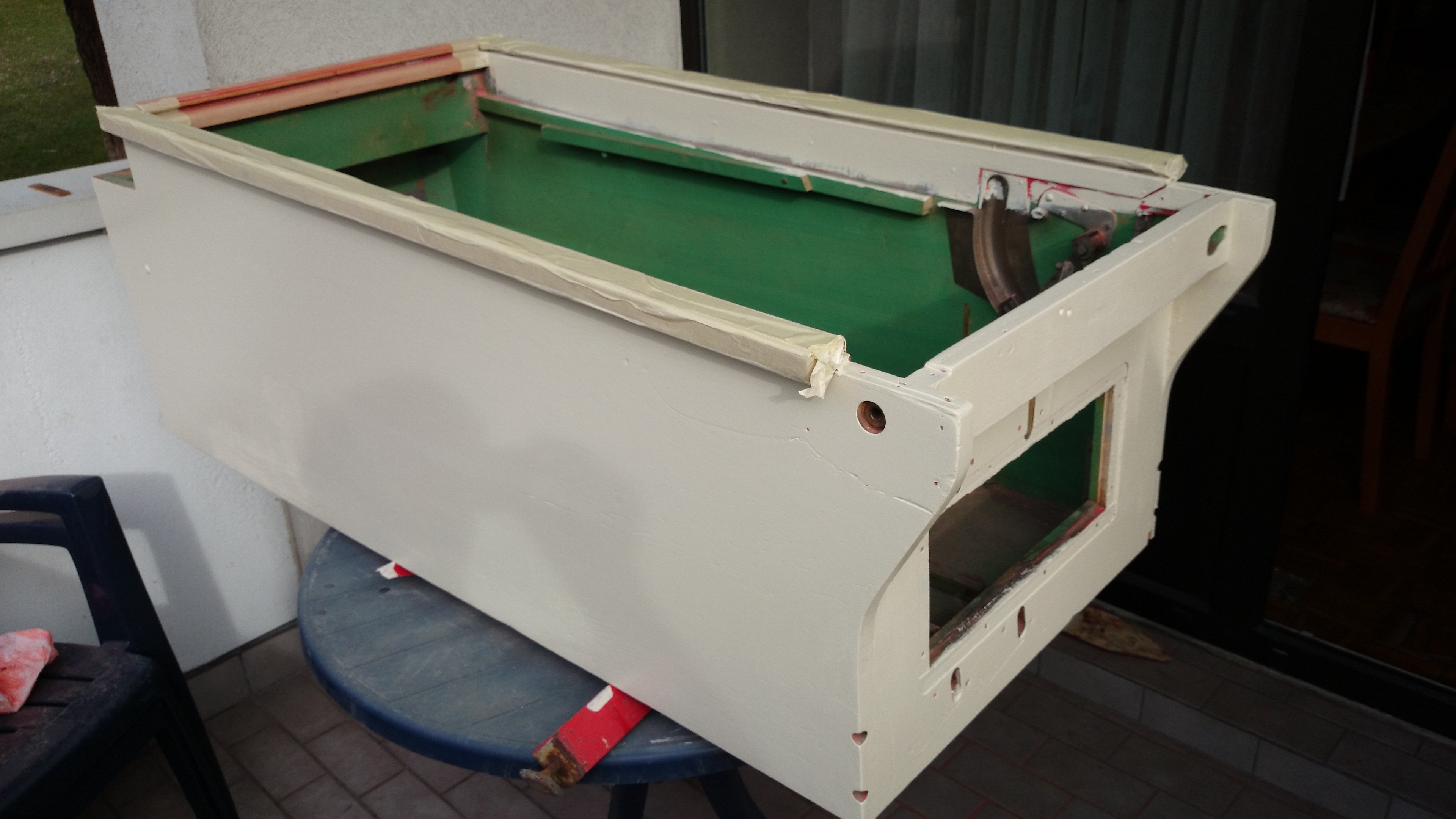 Since one of the previous owners had the great idea to paint the poor case completely red, the first part of the restoration to get the original painting back as good as possible.