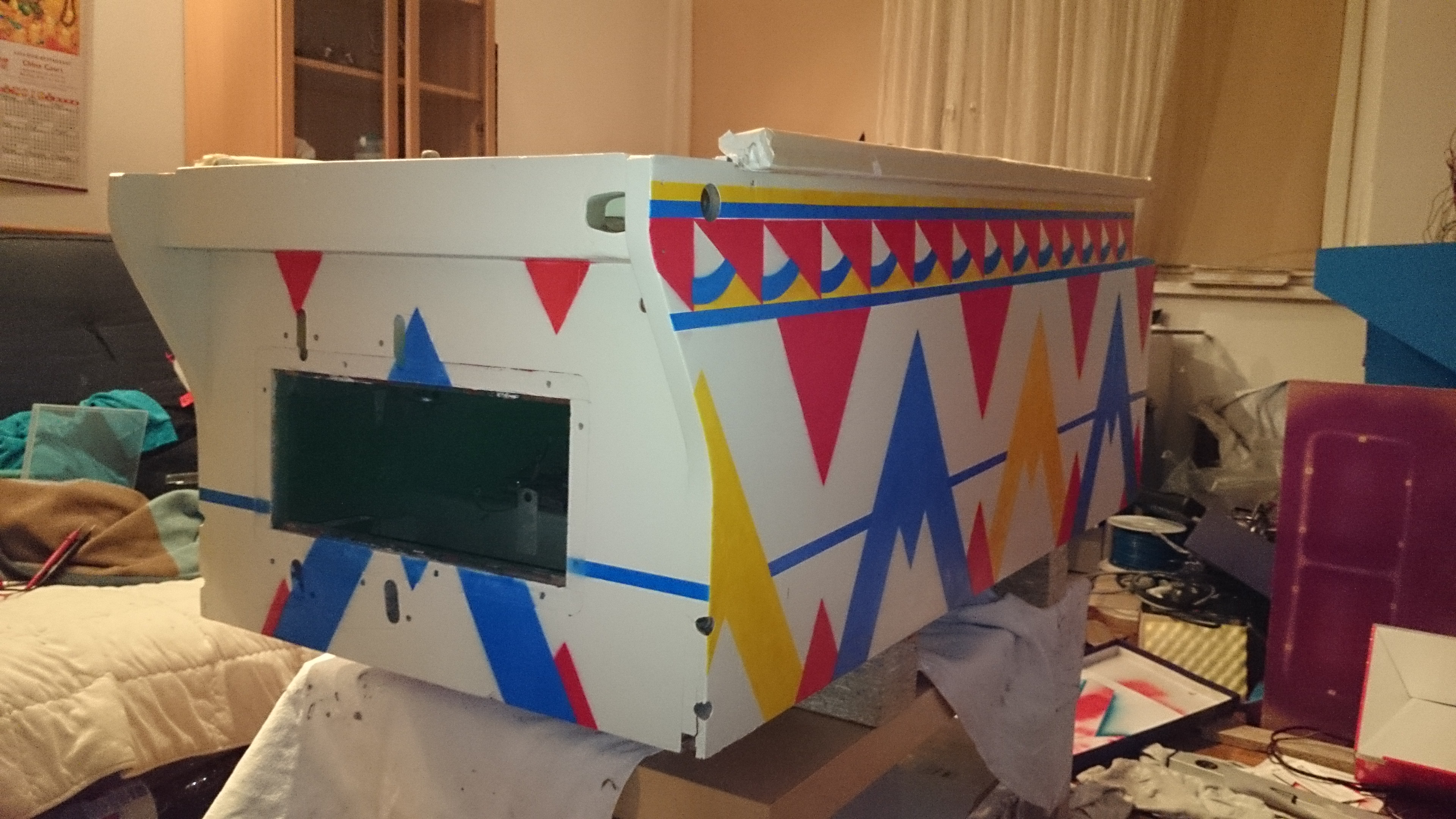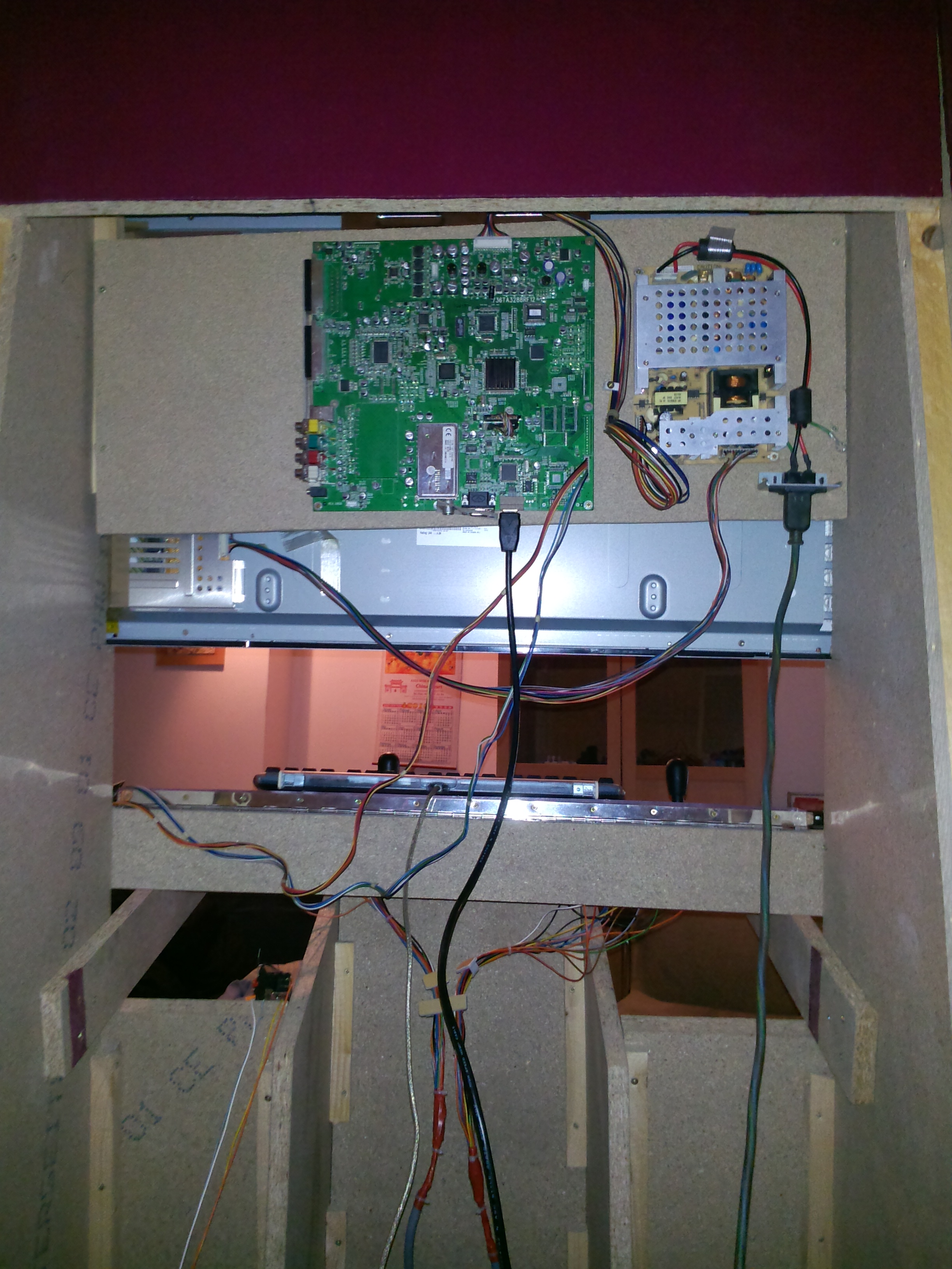 I made some changes to my original design as I got a 32″ TFT TV for free, so I used this instead of a “real” Arcade monitor.