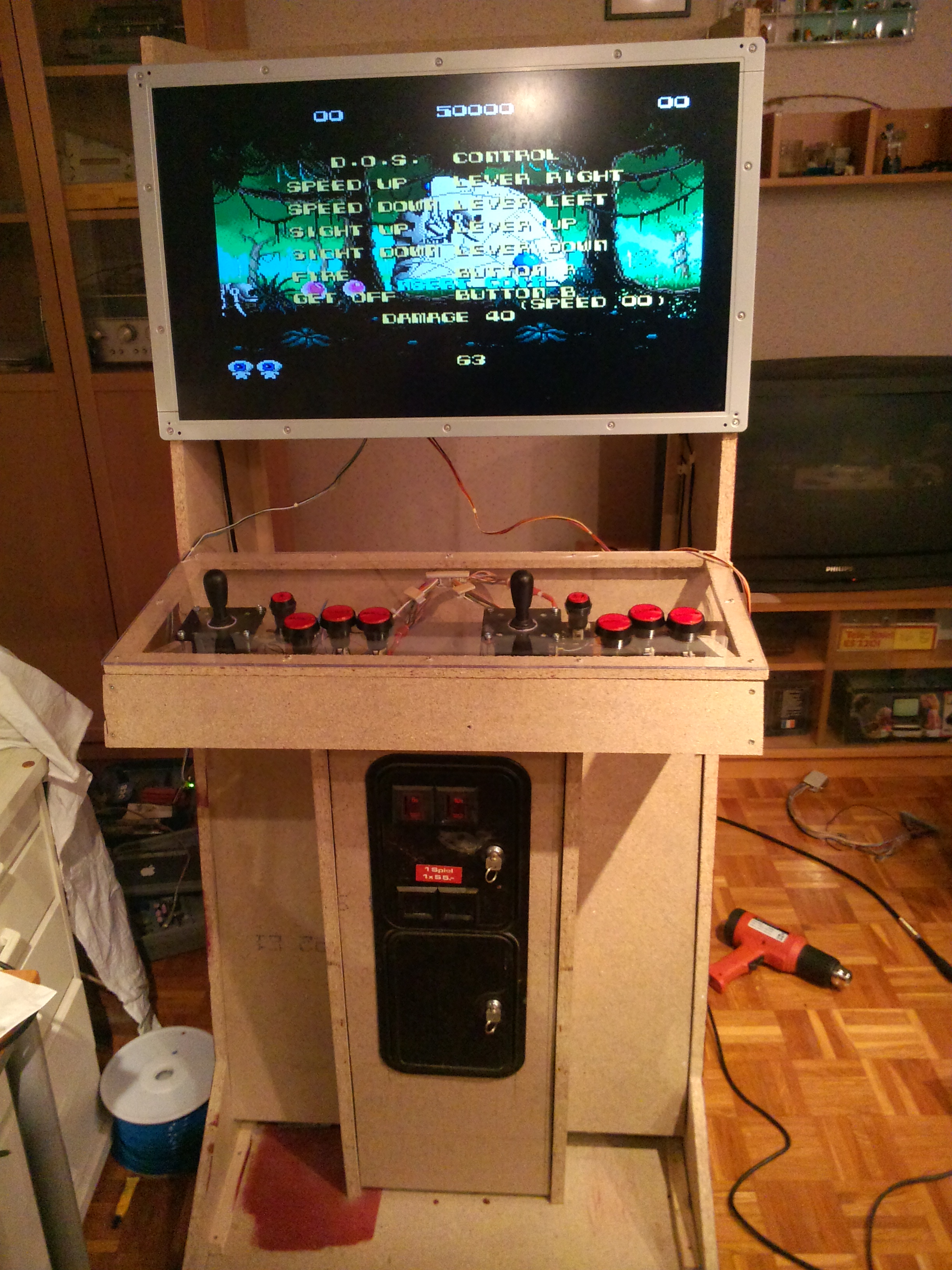At the moment it’s possible to use a RasPi for MAME or original PCBs … I’m planning to add a C64 and a PlayStation to it.